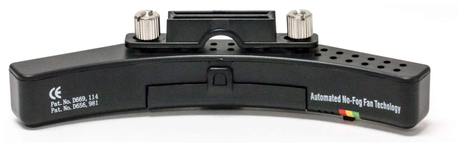 Once installed in your goggles, the fan module has 3 settings. Off, On, and Auto. The auto setting automatically detects fog and turns on the fan only when needed. Just set it on auto and let the module do all the work. The fan works by pulling moisture from inside the goggle and pushing it out the top of your goggles. When the moisture level drops to an acceptable level, the fan will automatically turn off. The fan is powered by one AAA battery.