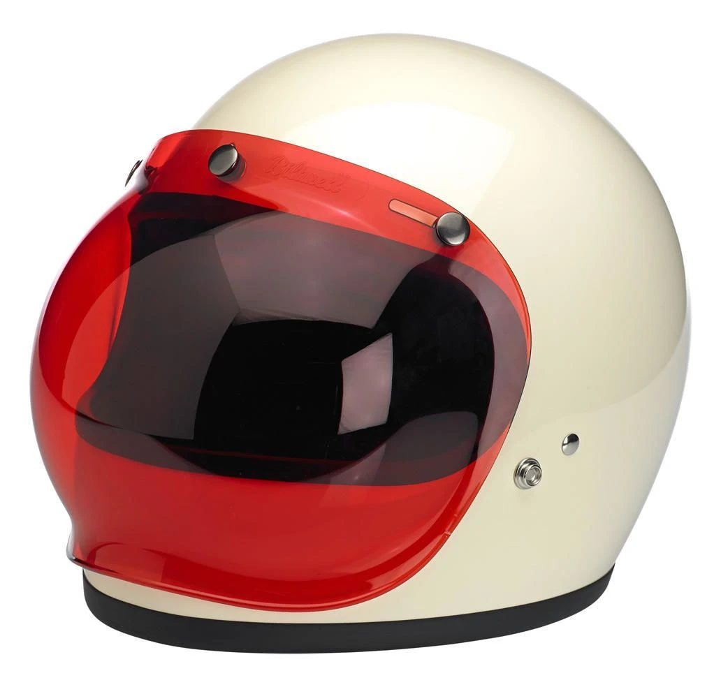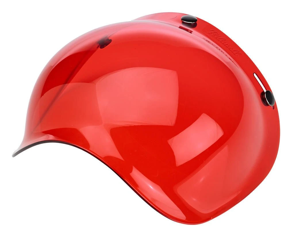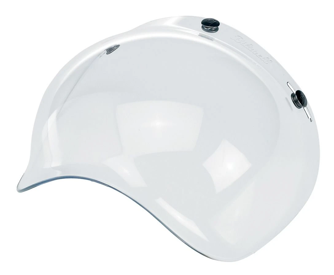 The Biltwell Bubble Shield is a new take on a tried and true design. Made with injection-molded polycarbonate, these tough retro 3-snap shields come in a variety of colors/tints to suit your lid, mood, weather, whatever.Â