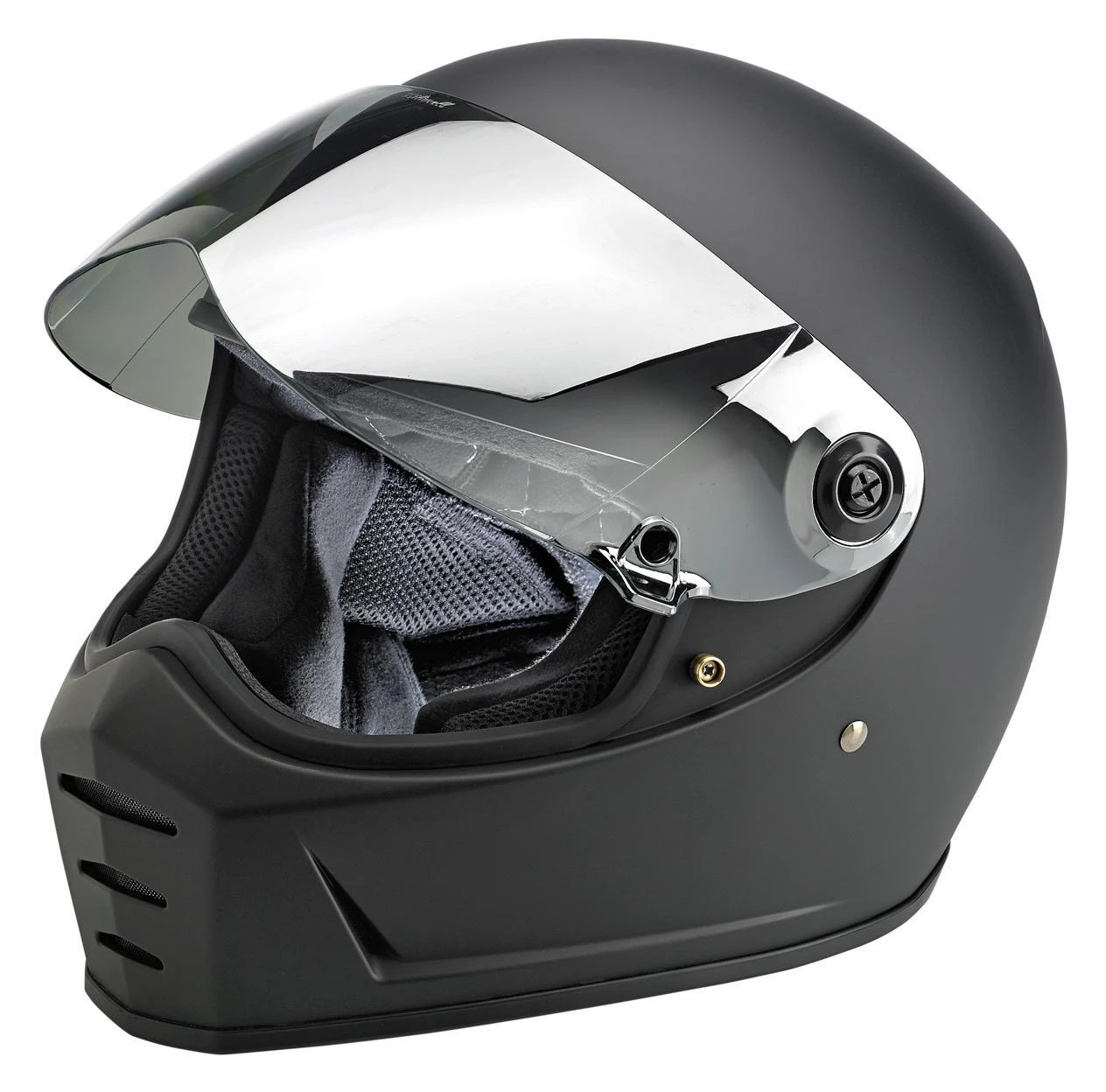 Lane Splitter anti-fog face shields features an optically precise injection-molded polycarbonate shield in solid or reflective finishes. Universally fits all Lane Splitter helmet sizes. One stainless steel snap secures the shield while in the down position.