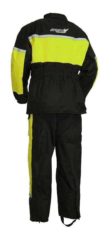 Keep the First Manufacturing Rain Suit ready and waiting for those hard-core rain storms, and you will not be disappointed. Like the legacy of beefy, overbuilt leather jackets that First Mfg is famous for crafting, this durable two-piece rain suit is assembled to the same heavy spec. Unlike throw-away, back-up rain suits that live about as long as one passing shower before ending up in a dumpster, the First Manufacturing Rain Suit will be your perennial rain suit that lives in your arsenal of travel gear year after year. Buy once. Replace later. … Replace much later.Â