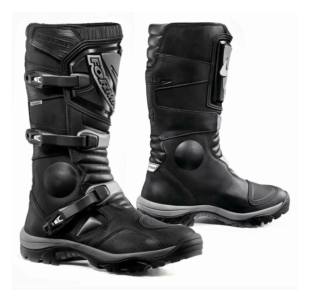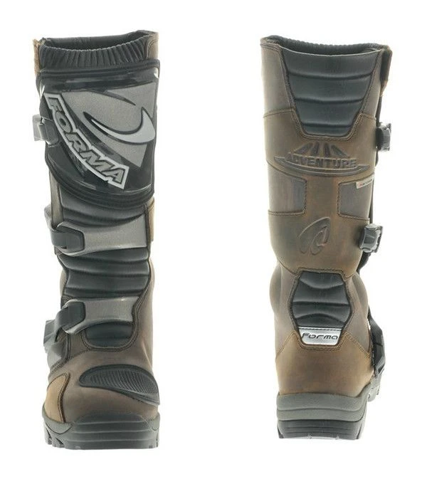 Designed specifically for ADV riders, the Forma Adventure Boots combine the comfort and flexibility of a road boot with the protective features and full height of off-road boots. Equipped with a vintage leather finish and drytex waterproof/breathable lining, the Adventure Boots keep your feet dry without limiting range of motion. The double density sole offers superb grip on the bike and gives riders a comfortable and grippy surface to walk on when off the bike. Integrated TPU inserts and reinforcements provide protection from impact injuries and unbreakable GH plastic buckles ensure you won’t be sidelined if you have a tip over.Â