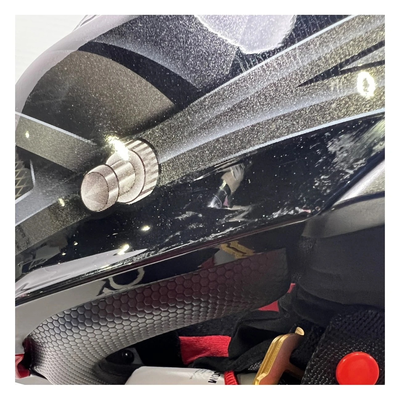 There is marking both sides of the helmet and scratch on the rear.