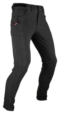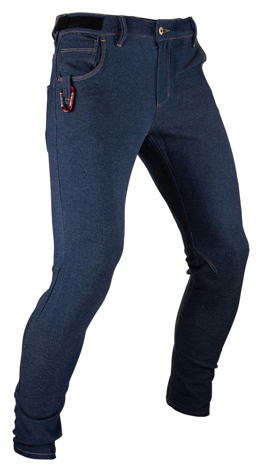 The MTB Gravity 3.0 denim style riding pants will keep you feeling relaxed and loose while you hit those doubles in the bikepark. Made from a high-performance stretch material with pre-curved knee fit, the Leatt Gravity 3.0 pants are lightweight and durable pants with cool additional features. Ideal for ripping up the bikepark or just cruising the pumptrack. The hook and loop style closure waist strap lets you dial in the fit. Featuring jean buttons and vegan leather patches the Gravity 3.0 pants are ideal ridable streetwear.
