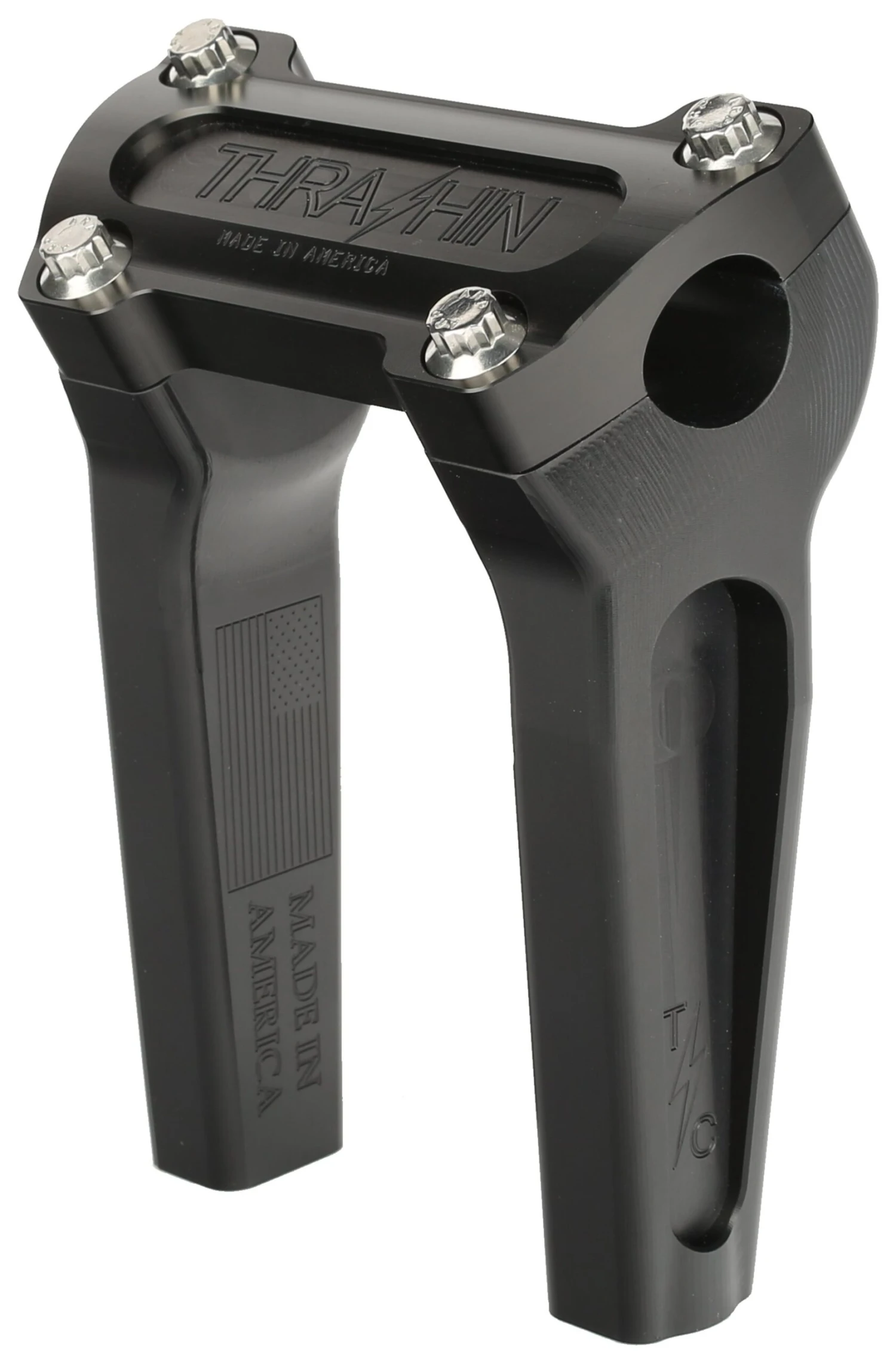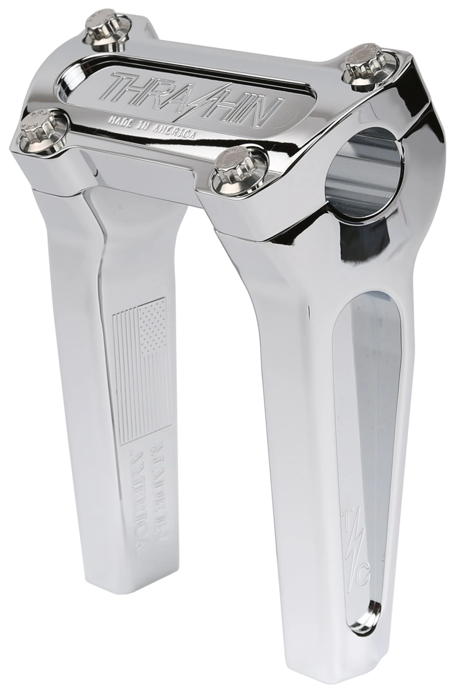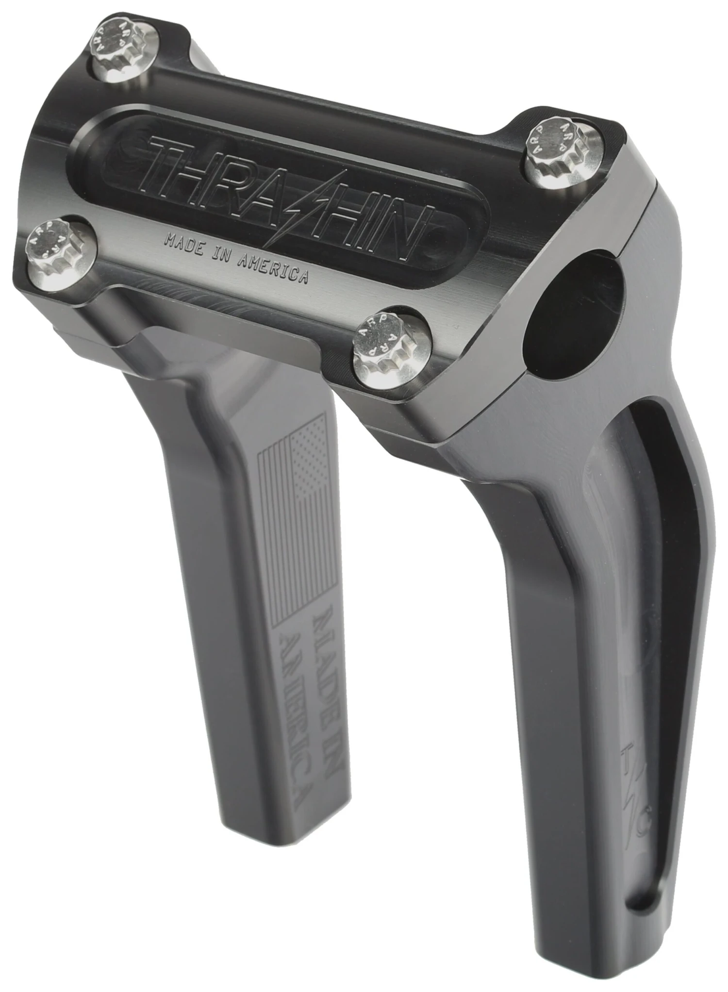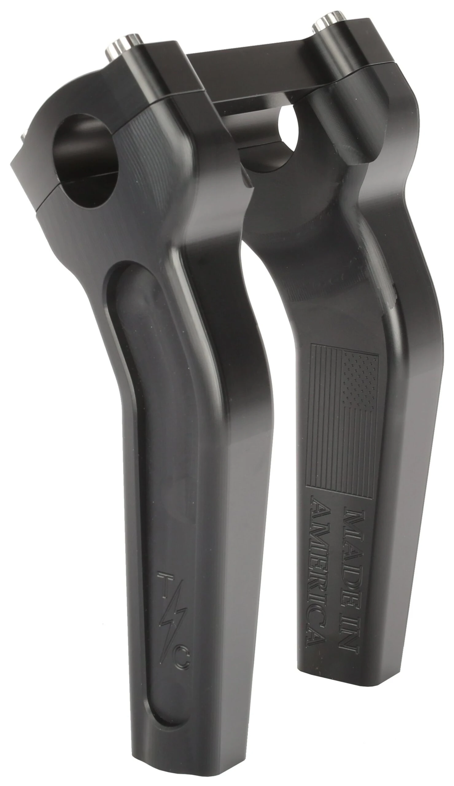 Be proud of what you put on your bike. Thrashin Supply Co. strives to build the best parts, without cutting corners, right here in the United States of America. Thrashin Supply Risers are made of Domestic 6061 aluminum and paired with ARP hardware. The black finish is a hard anodized black with an anti-fade agent added while the chrome finish is triple nickel plated (known as triple chrome) to withstand severe weather conditions, so your risers stay looking fresh for years to come. Top clamps are angled at 35 degrees whether you choose a pull back or straight riser. This gives the risers a stylish look and feel!