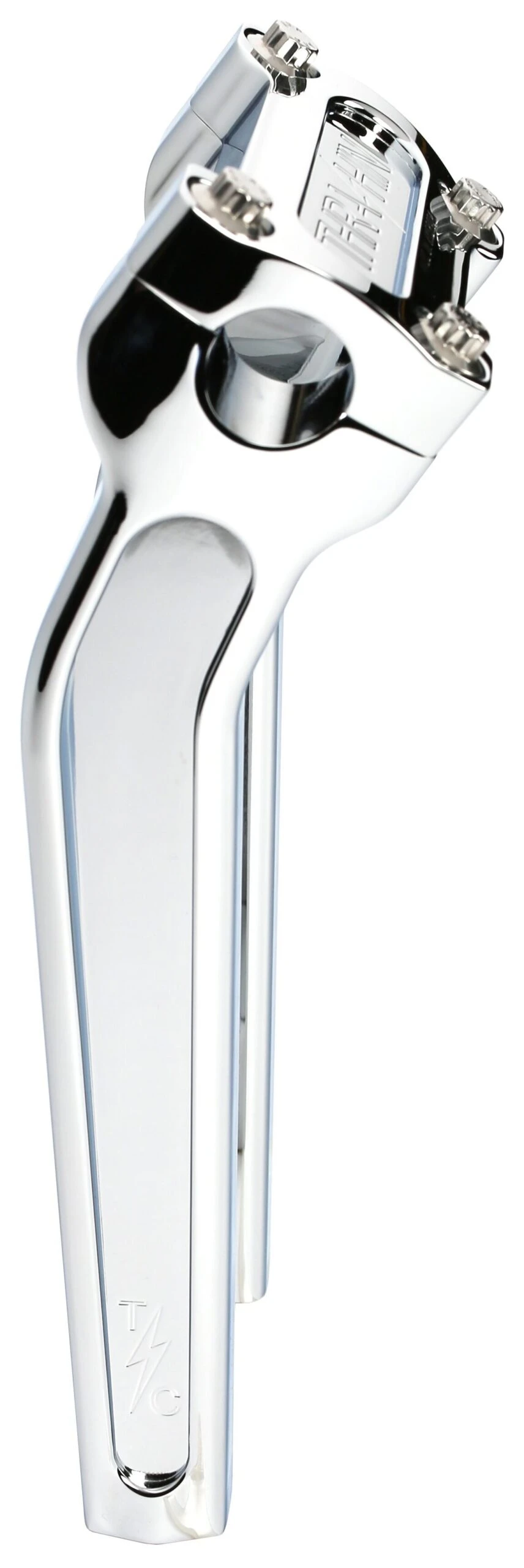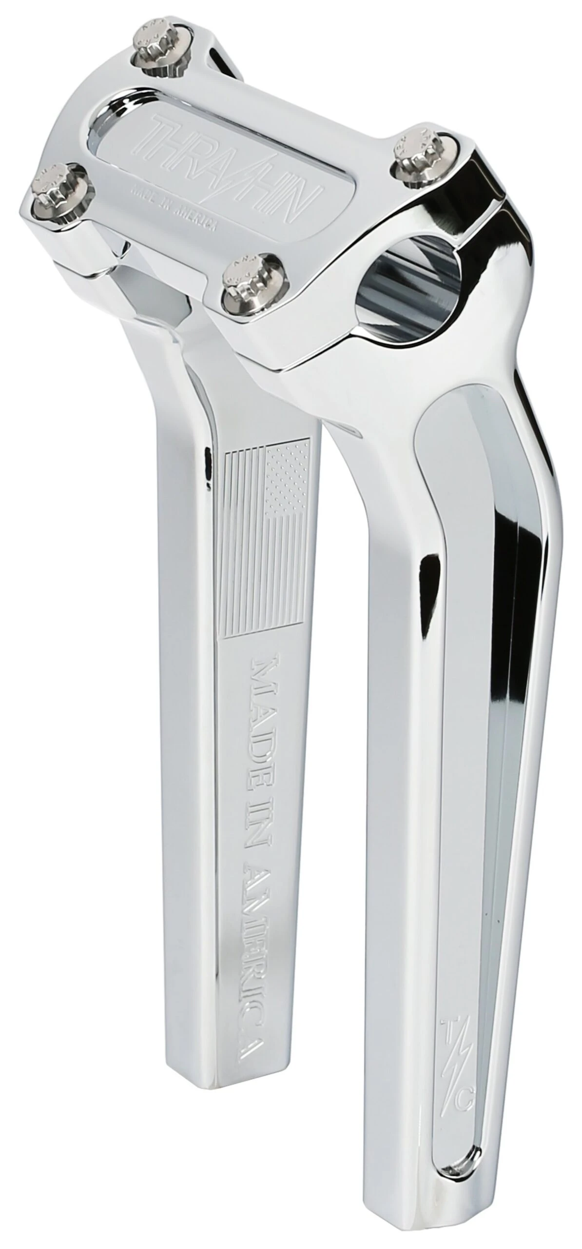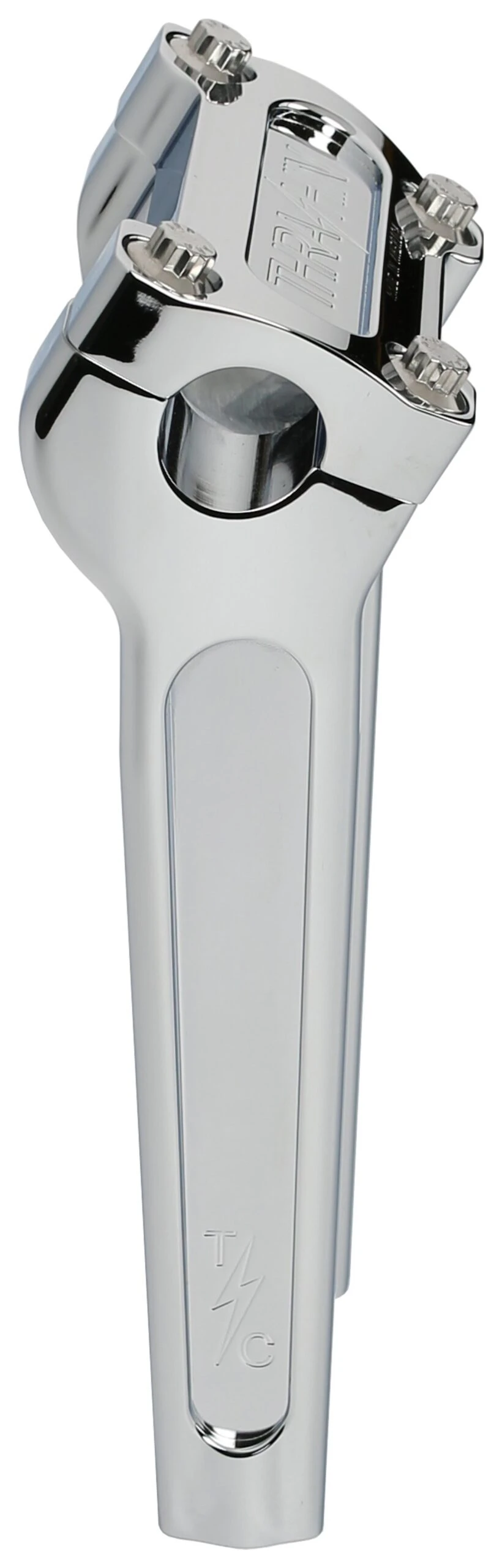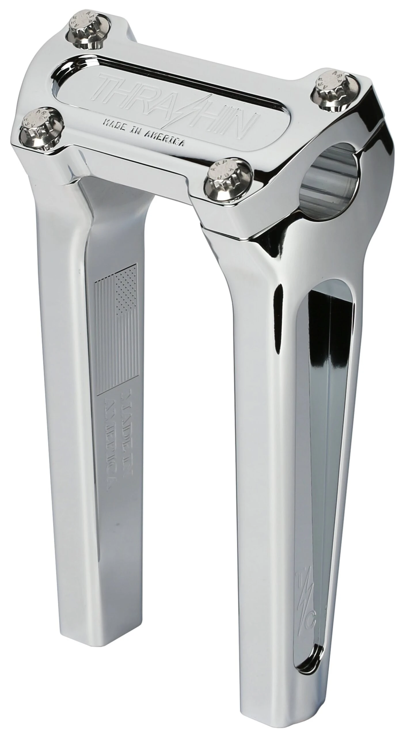 Be proud of what you put on your bike. Thrashin Supply Co. strives to build the best parts, without cutting corners, right here in the United States of America. Thrashin Supply Risers are made of Domestic 6061 aluminum and paired with ARP hardware. The black finish is a hard anodized black with an anti-fade agent added while the chrome finish is triple nickel plated (known as triple chrome) to withstand severe weather conditions, so your risers stay looking fresh for years to come. Top clamps are angled at 35 degrees whether you choose a pull back or straight riser. This gives the risers a stylish look and feel!